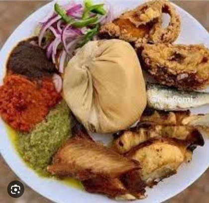 Charcoal-grilled salmon served with fermented kenkey and pepper sauce. A modern twist on a classic Ghanaian combo.